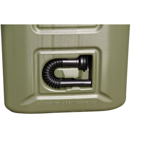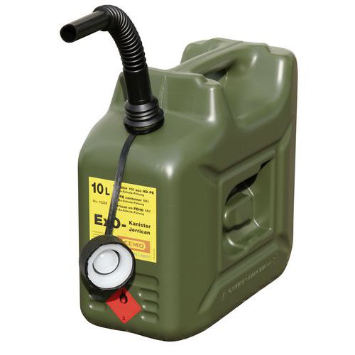 Bensiinikanisteri, EX0, ADR-hyväksytty, Väri: Vihreä, Tilavuus: 10 L, Kokonaiskorkeus: 310 mm, Paino: 2 kg