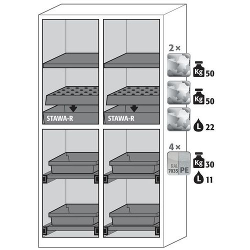 Kemikaalien säilytyskaappi CS-CLASSIC-MultiRisk, Kokonaiskorkeus: 1950 mm, Kokonaisleveys: 1055 mm