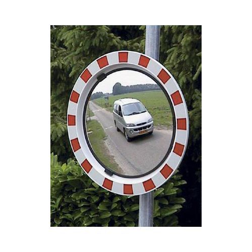 - Puna-valkokehyksinen liikennepeili esim. risteysten ja ulosajoväylien valvontaan.