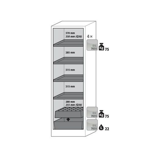 Paloturvallinen kemikaalikaappi Q-CLASSIC-90, Kokonaiskorkeus: 1953 mm, Kokonaisleveys: 599 mm Paloturvallinen kemikaalikaappi Q-CLASSIC-90, Kokonaiskorkeus: 1953 mm, Kokonaisleveys: 599 mm