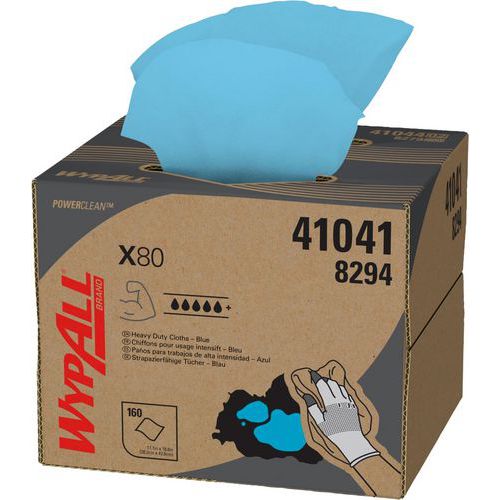 Tukeva pyyhe karkealle lialle, X80 – Wypall, Väri: Sininen, Muoto, leveys: 427 mm, Muoto, pituus: 282 mm, Lkm